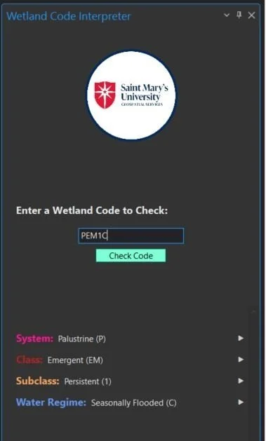 The NWI program utilizes alphanumeric codes to identify wetlands that are mapped on the landscape. Our staff needs to know these codes but also needs some tools to help decipher and create correct codes. That’s where Bradley came in again. We had a Python script that needed a home for these types of tasks and Bradley felt he could take the code we had and create another Esri add-in for our software as well as the much-requested phone app for our staff to utilize off-line in the field.